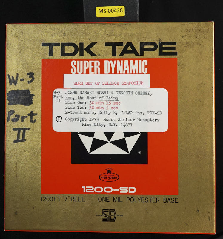 Additional text: Duplicating Master, TDK Tape, Super Dynamic, 1200-1200ft 1.5mil Polyester Base, W-3 Part II, Side One: 30 min 15 sec, Side Two: 30 min 15 sec, 2-track mono, Dolby B, 7-1/2 ips, TDK-SD, Copyright 1973