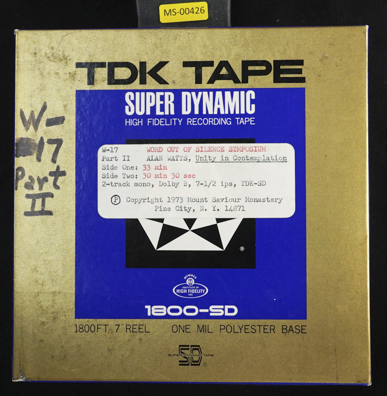 Additional text: WORD OUT OF SILENCE SYMPOSIUM, Part II, Side One: 33 min, Side Two: 30 min 30 sec, 2-track mono, Dolby B, 7-1/2 ips, TDK-SD
