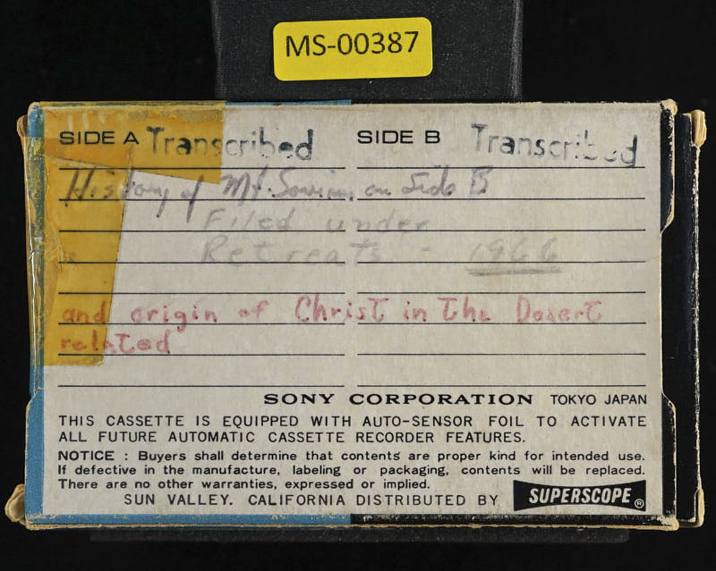 Additional text: History of Mt. Saviour on Side B, Filed under Retreats 1966, and origin of Christ in the Desert related