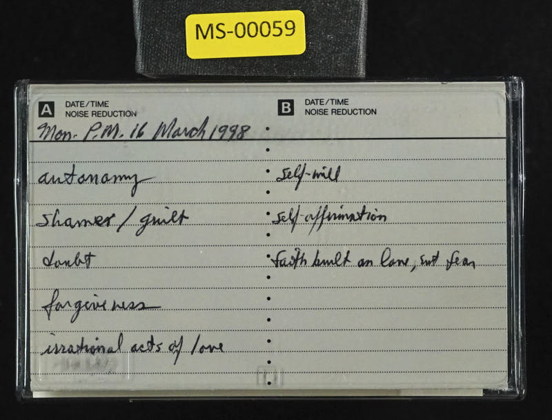 Additional text: Mon. P.M.\n autonomy\n shame/ guilt\n doubt\n forgiveness\n irrational acts of love\n self-will\n self-affirmation\n faith built on love, not fear\n