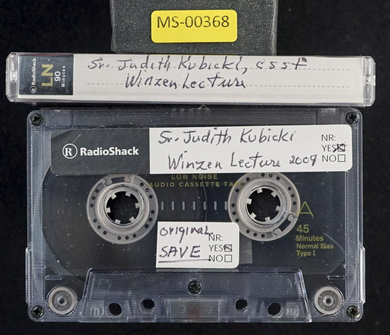 He took the whole class down to the Smithsonian, gave a lecture and used the class to exhibit how it sounded. He said to me, sister, you can't sing. Because I was the only woman in the class. Because that's not the way it was done. There were no women in the medieval period that he was demonstrating singing. It was choirs of clerics. Yes. Rates, not women. Yes. I think this follows off on that. Do your students get discouraged? Can you speak about the lack of liturgical leadership roles for women over the domination of these roles by men? Well, one of the things that I do as a topic in one of my classes is how do we name God? and we get into the issue of inclusive language, but they always bring up priesthood, you know, and so I don't... I don't treat it as a topic in the class, but I usually give them a few remarks, you know, and I always say, the Holy Spirit will have her way eventually.