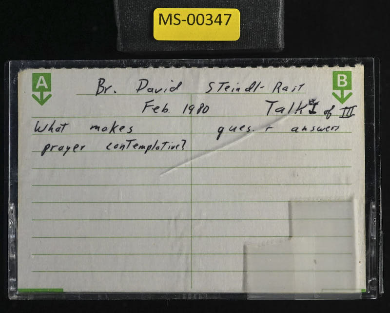 And before we start, I would like to ask you some questions. Two, to be precise. And I brought some paper, and I would like to hand this out. Maybe we can just pass it along. Oops, on both sides. And I would like to ask you, right off the bat, without any input from me, Now, what you think contemplative prayer is, since you asked me to talk about it, you must have some shred of an idea of what it is that we are talking about. Well, maybe we should give all the slips to Tony and he has to fill out 35 slips. Well, that's all right. Whatever you say, it doesn't have to be terribly profound. But somehow, your answer as to contemplative prayer is dot, dot, dot, and then you write just what you think it is.