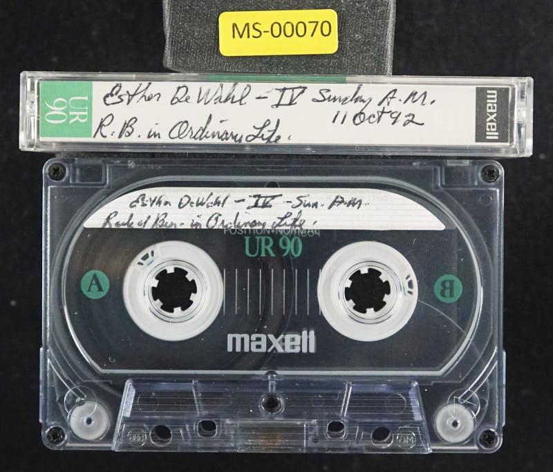 Additional text: Side A: Esther De Wall - IV - Sunday A.M. 11 Oct 92 R.B. in Ordniary Life\nSide B: contd.